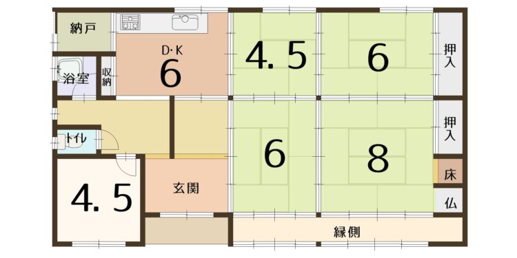 - 和室6帖×2室/和室4.5帖/和室8帖/洋室4.5帖/DK6帖