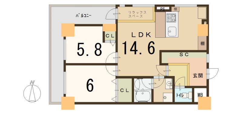 | 間取り詳細 | LDK14.6畳、洋6畳、洋5.8畳 | 土地権利 | 所有権 |